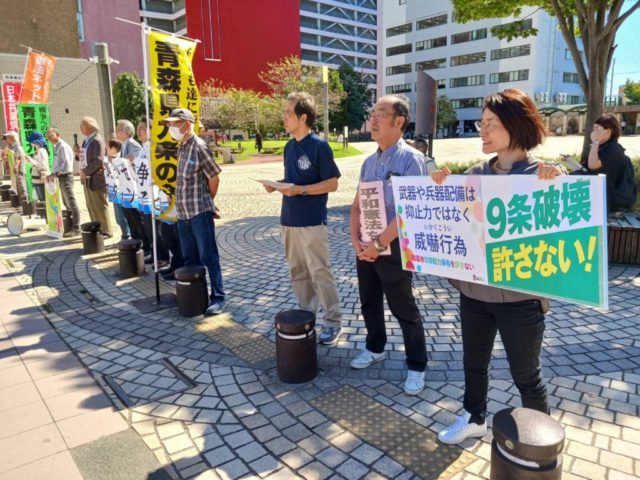 9.19は #戦争法 強行採決から10年。青森駅前で諸団体とスタンディングに参加、訴えました。憲法審査会で与党推薦の憲法学者も揃って「違憲」と。小林節さんは「国の最高機関がこんな法案を出すなんてとても恥ずかしい」と!手続きも数の力で乱暴に通してしまったのです改めて戦争準備はNO!