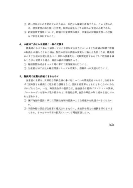 水産経済新聞が取材してくれました。答弁は渋いところもあるけれど、どんな研究が必要か具体にわかれば県を通して補助することを答えたこと。厳しい実態を届けたことは重要でした。
