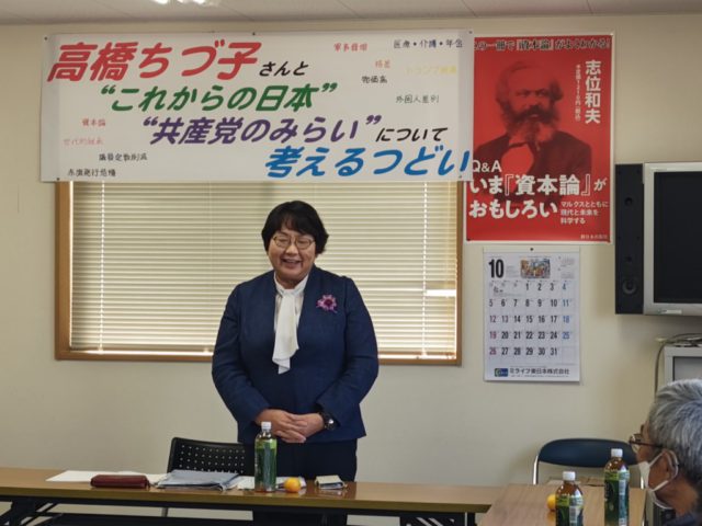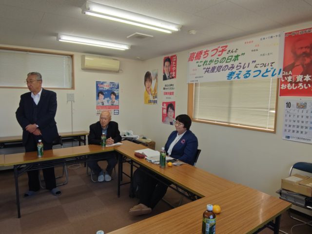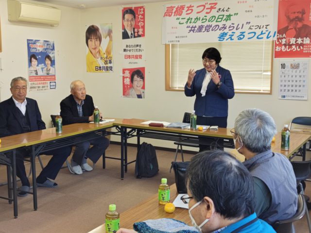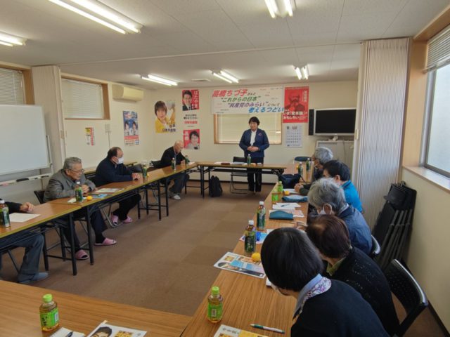 宮城県石巻市でつどい。三浦一敏県議と。息子さんがブラック企業、最賃も守っていないのでは。建設分野は違反のはずが実質、派遣の働き方だ。声あげられずに我慢している人はいっぱいいる。病床削減や医療費削減、免許返納で足の確保どうする?まさに直面している課題が出されました。