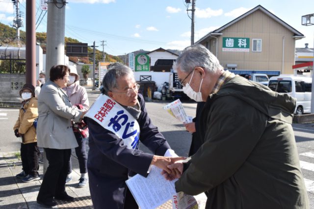 小熊省三候補と黒岩地域で。沢山集まってくださいました、学校給食の無償化は質が悪くなると木幡市長 言っているそう。でも4割補助まできたんだし来年から無償化すると政府は決めたんだからその分を充実に回せばいいのでは。シルバーパスの上限は撤回を!村山国子市議と。