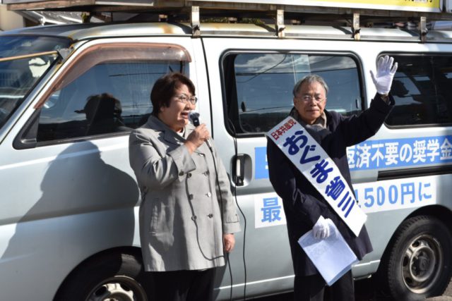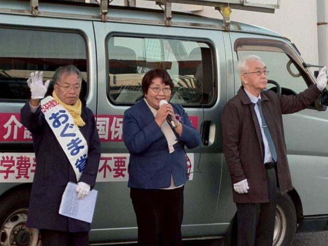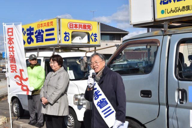 小熊省三候補と飯坂で。介護の利用料2割が取り沙汰され、医療、介護の崩壊の危機。医療、福祉の現場にいた小熊さんと一緒に国にも声をあげ、市民の暮らし市政に変えよう!4人の市議団に戻して、開発ではなく市民参加のまちづくりを!山田裕市議と。
