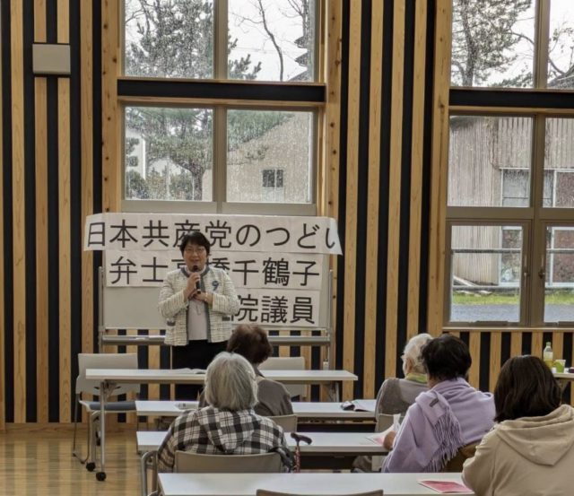 秋田県能代市でつどい。私の生まれたまちです。今はどこへ行ってもクマの話題という。いつも街宣するイオンにクマ侵入事件があったばかり。クマの話、自衛隊のこと、1人ぐらしで不安。ディサービスうけているけど、、という方など。地域包括支援センターの説明をする議員さん、介護保険の理想と現実の問題を説明しつつ、頑張ってきたこと、これからも頑張ることを約束。