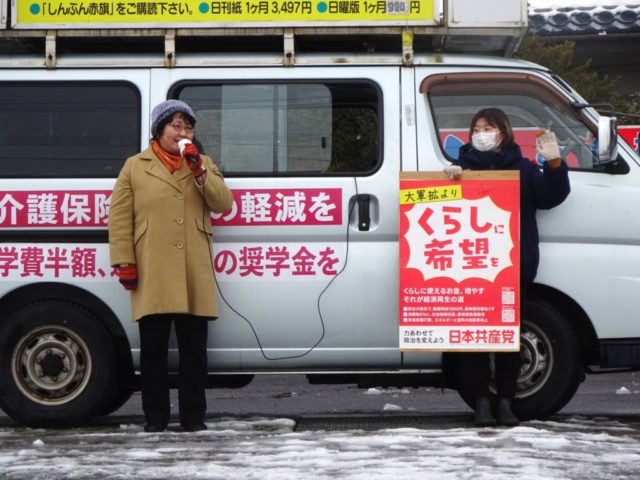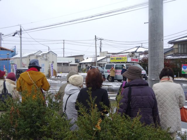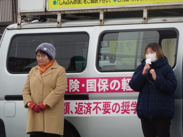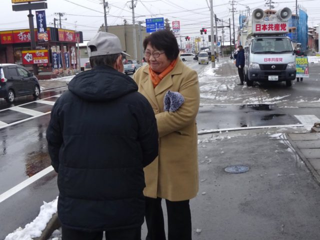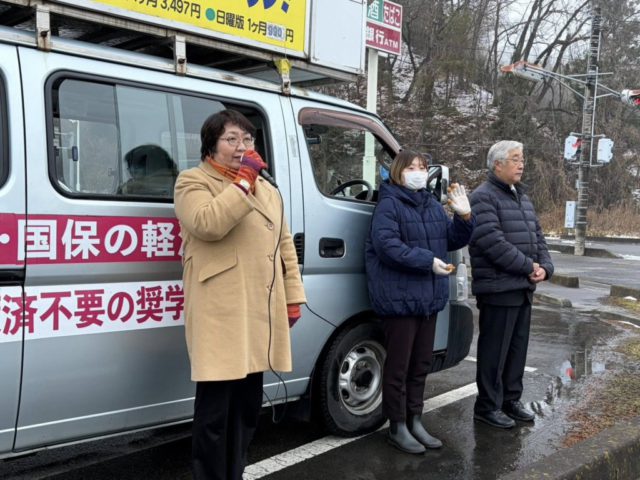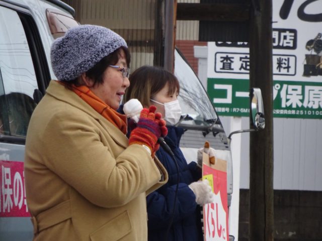 午後は、大橋さおり県議と伊達市3ヶ所、旧保原町、旧柳川町、旧霊山町で街頭演説.寒い中集まってくれた皆さん、元気出ました。ありがとうございます!伊達市は来年4月に市議選あり、霊山では佐藤清寿市議が訴え.二人に一人は高齢者、1割は空き家という町をどうするか。空き家解体に補助や傾聴器補助など様々な提案をしてきたと話しました、
