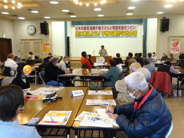 テーブルごとの懇談の際、50代男性が入党を決意!Tさんといいますが、佐々木ゆう市議と一緒にその方とお話ししている間、まわりの支部の皆さんはじいっと何も言わずにいたのです。でも、一人の方が「高橋さん、この人は赤旗の日刊も日曜版も読んでいる。病気抱えているし、苦労してきたけど、私たちは入ってくれて本当に嬉しいよ」と!皆さんよくご存知だったのです。良かった、これから一緒に頑張ろうね![]()