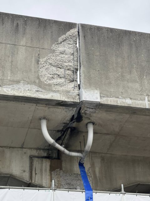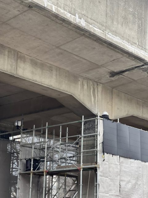 JR八戸線 高架橋 損傷したコンクリートを一旦剥がして再補強する工事中