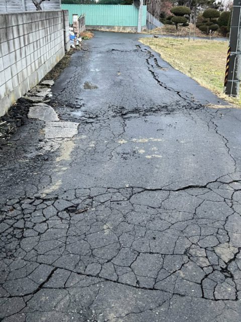 ⑤八戸市糠塚地区。「震度6強なんてもんじゃなかった。もっと揺れた」というMさん。家の中は傾いた感じ。壁に細かいヒビが。庭には地割れ、隣家の倉庫は明らかにズレたとわかる。罹災証明は「順番待ち」と言われたと。。