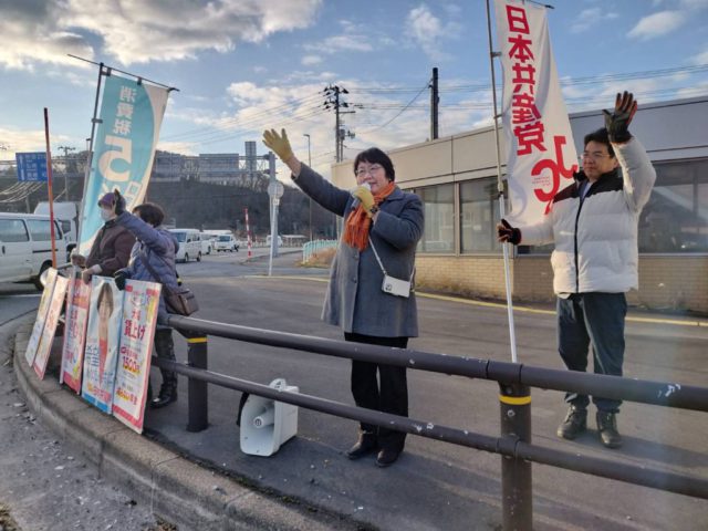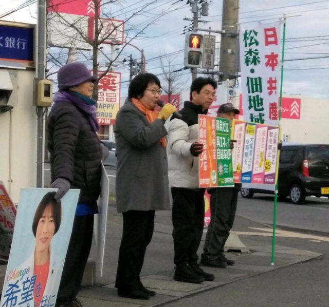 今朝は地元松森佃後援会と朝宣伝。よしまた洋県議と。吉俣県議は地震対策の取り組み報告と、政府高官の核保有発言と小泉防衛大臣が「選択肢」と述べたこと。私は昨日の東奥日報記事。経団連の会長企業である住友化学の株主総会で「漫然と献金している」のは企業経営にマイナスと指摘があった?!
