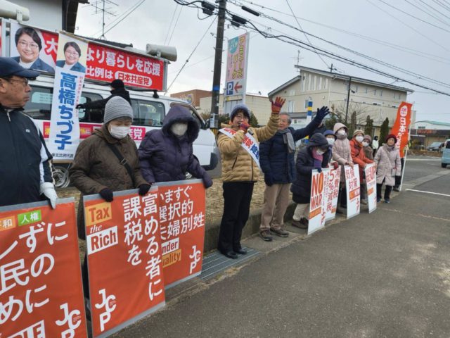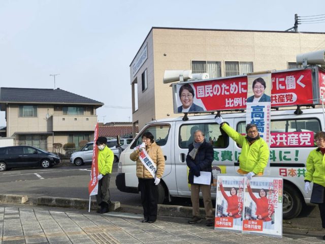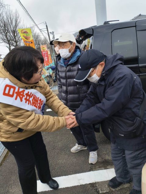 福島市。今朝は県庁前で、宮本しづえ県議、小熊省三元市議と訴え。医療機関の7割が赤字です。地域医療を守り、ケア労働者の処遇改善を。福島県は医療機関への補助金や中小企業への直接支援をやっています。地方の頑張りに応え、国が支援を!