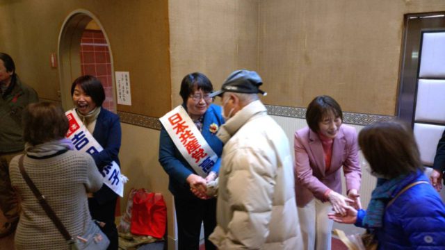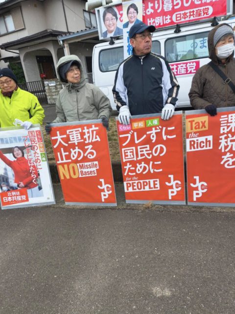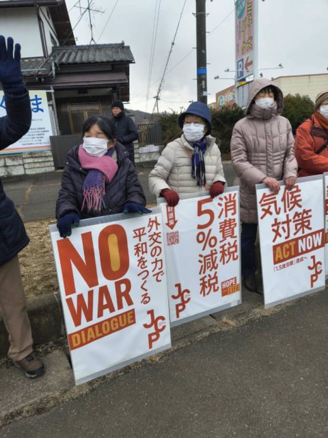 午後も二ヶ所、寒い中待っていてくれた皆さん、できたてのプラスターを掲げて立ってくれました!ブレずにはたらくってどういうこと?私の思いを語りました。裏切られたことを責めたりすることよりも、私たちはブレません。そして今は小さな塊でも、おかしいな?と思う皆さんと新しい共同をはじめます。