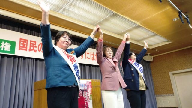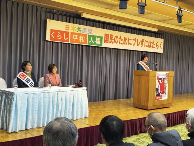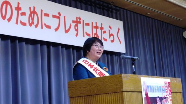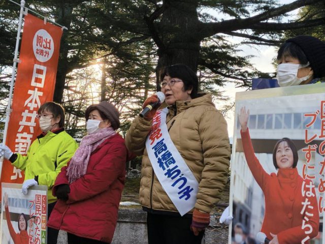 盛岡市で、#田村智子 委員長を迎えての演説会。 #吉田恭子 岩手1区・比例重複候補とともに。沖縄から駆けつけた田村委員長は暖気まで運んできてくれたかのような、熱い、迫力の訴え。会場も一体となって