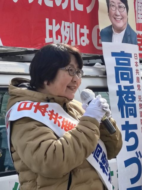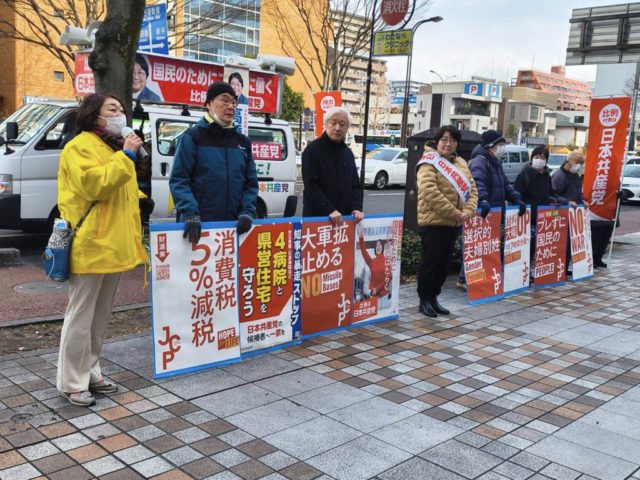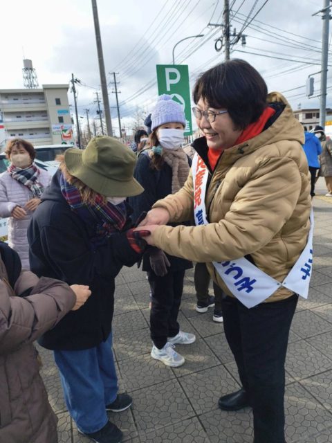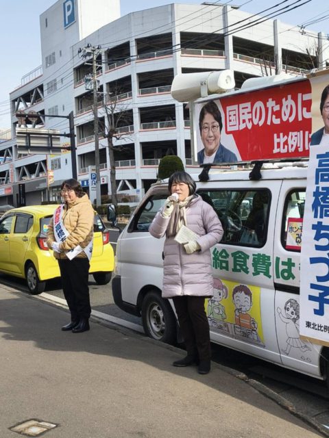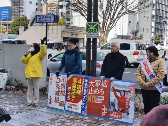 仙台市宮城野区。大内まり元県議とともに訴え。渋滞に巻き込まれ到着が遅れてしまい、コンパクトに