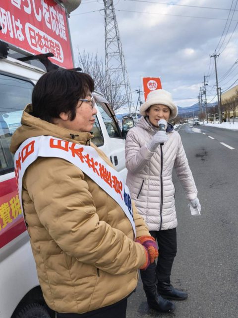 今朝は岩手県一関市からスタート。駅前と農協前で演説。斉藤よしひろ市議と。一関市では原発事故のあと地震の被害にあわせて原木椎茸が出荷できないなどの被害が。党県、市議団が説明会を主催.国会では林野庁に対応求めました。