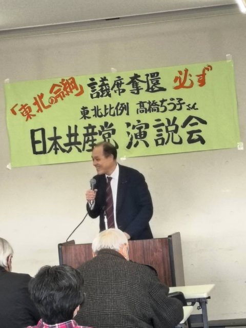 最後は北上市の演説会。田島清美市議の司会、安徳すみこ市議の応援演説。3.11の時真っ先に岩手県庁をおとづれ、5日後に国会に戻って申し入れ第一弾をやりました。ガソリンの供給を急ぐこと、内陸に支援拠点を置くこと。などを提案したこと。日本共産党も各県の担当県を決めて支援をおこなったこと等。