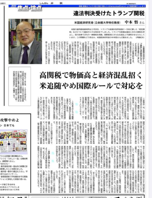 今日3月6日付赤旗3面「焦点・論点」に、米国経済研究者である中本悟立命館大学特任教授のインタビュー記事が掲載されています。すごく納得、引き込まれました!