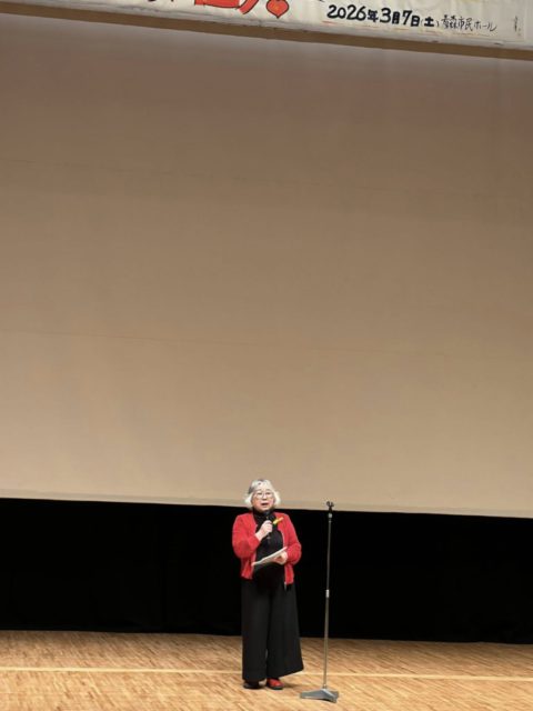 実行委員会を代表して主催者挨拶をした新日本婦人の会会長の阿部喜美子さん。