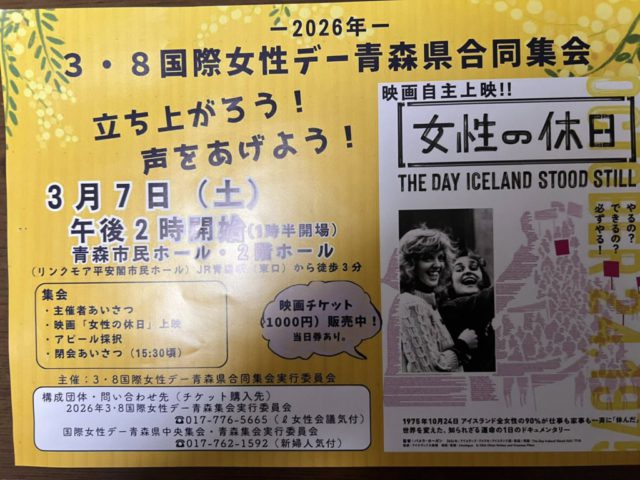 3.8国際女性デー青森県合同集会に参加、念願の映画「女性の休日」を観てきました。ジェンダーギャップ指数世界一のアイスランドで、1975年、全女性の9割が仕事も家事も休んだ。ストライキ、では保守派に抵抗感あるから「休日」にしよう!それってすごい。世界を変えた女性たちのドキュメンタリー。![]()