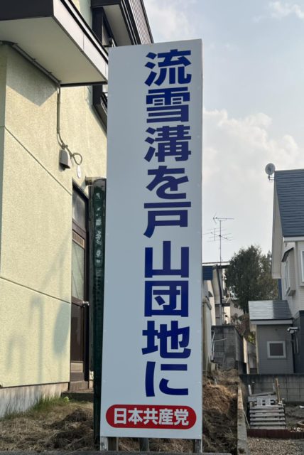 高橋さん!と私の顔をみて驚く人。急に泣き出すのでどうしたの?と思ったら赤旗の一面をみて、毎日毎日トランプのニュースみて、怖くなると、、。そして、地域支部がかかげた「流雪溝」の看板みて、早くできばいいな、といつも見ていたと。要求って大事。