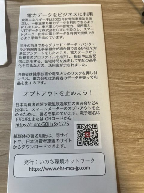 ★昨夜14日は、電磁波問題市民研究会、いのち環境ネットワークなど4団体が主催するオンライン学習会がありました。スマートメーターを拒否した人には検針員を出さない代わりに家の中に入り込み、あらゆる電化製品をチェック、時間ごとに使用量を記録させるなど、度外れた対応している電力会社もあるなど![]()
