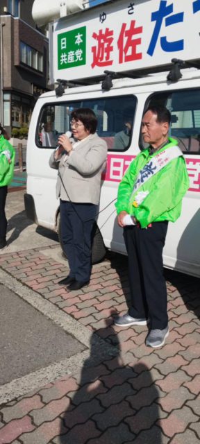 #ゆうき豊 候補。大ベテランの小沢和悦市議の後継は「ゆうきが必要だったね?」と切り出し、でもゆうきさんは、大崎民商の事務局長としてコロナのときは数百軒もの中小零細業者まわり、持続化給付金の申請などをお手伝いした実績。この経験を市議会で生かしてくれることを期待します!